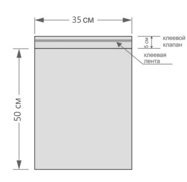 Пакеты ПВД размером 35*50 см с клеевым клапаном 5 см изготовлены из первичного полиэтилена высокого давления (ПВД) плотностью 75 мкм.